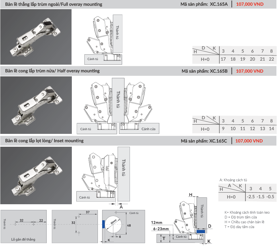 THÔNG SỐ KỸ THUẬT Bản lề 165 độ GrandX XC.165C