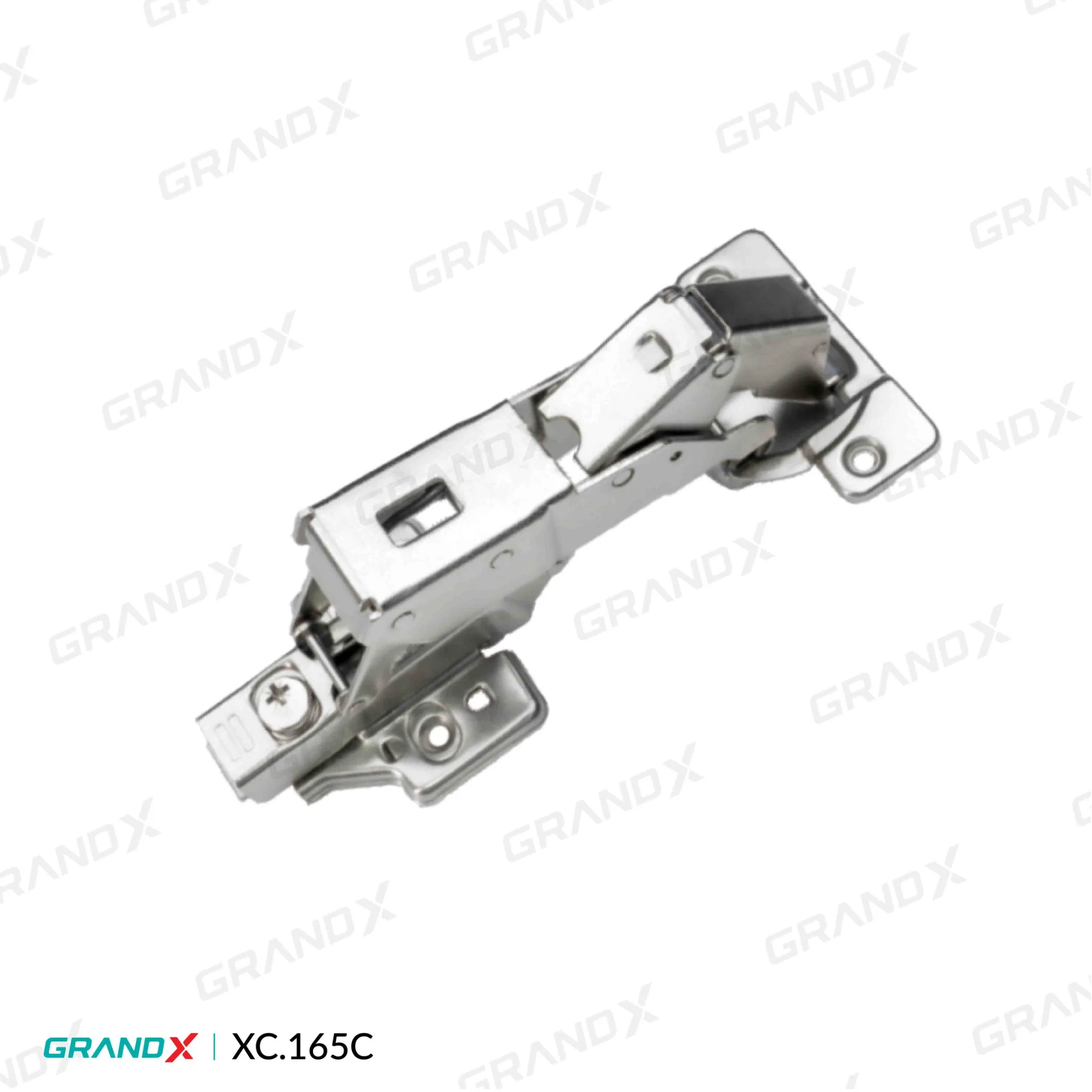 - Bản lề 165 độ GrandX XC.165C là lựa chọn lý tưởng cho các công trình yêu cầu sự linh hoạt và bền bỉ. Với khả năng mở cửa lên đến 165 độ, sản phẩm giúp tối ưu hóa không gian sử dụng, mang đến sự tiện lợi khi mở rộng cửa tủ hoặc các thiết kế nội thất cần không gian lớn hơn.