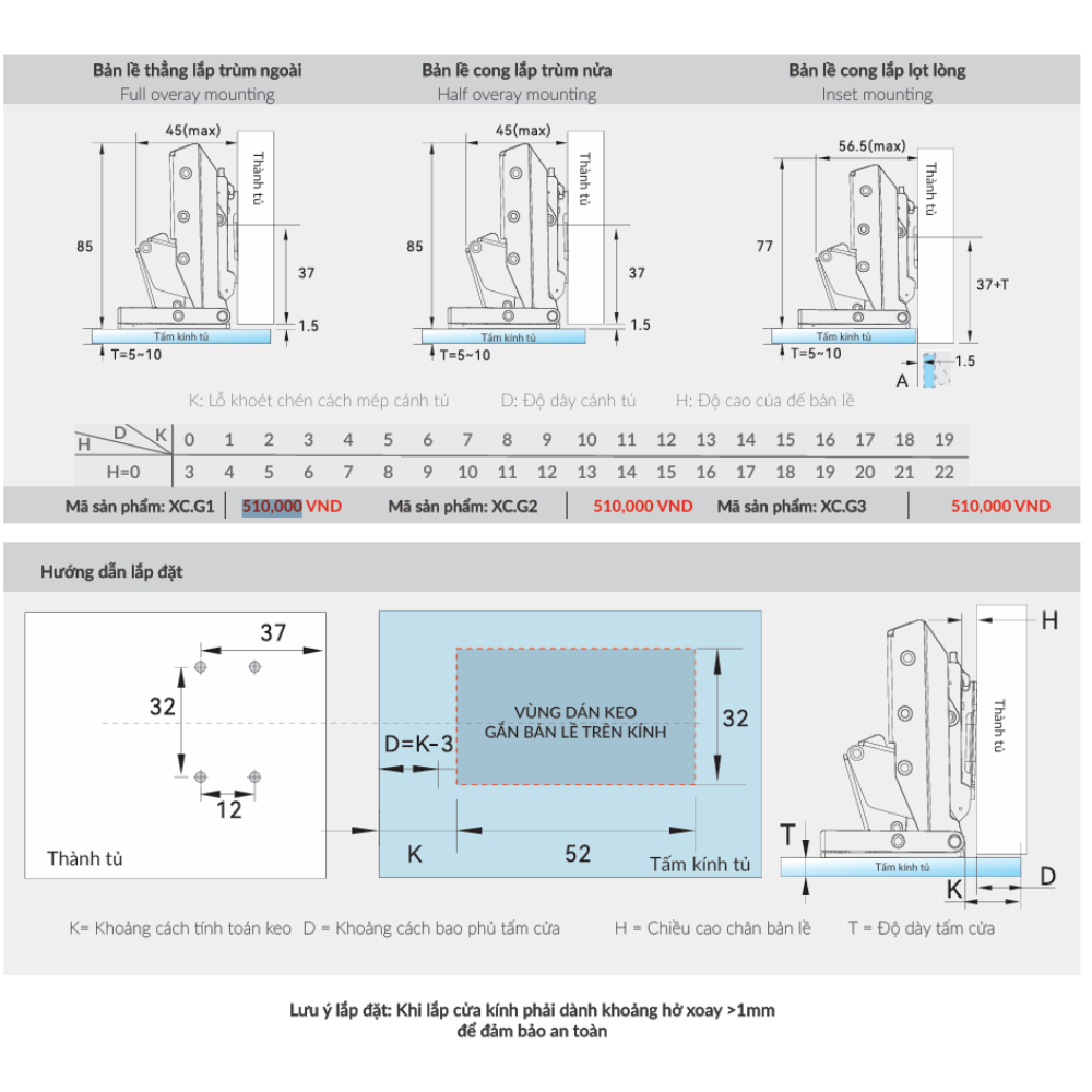 THÔNG SỐ KỸ THUẬT Bản lề kính cao cấp GRANDX XC.G1