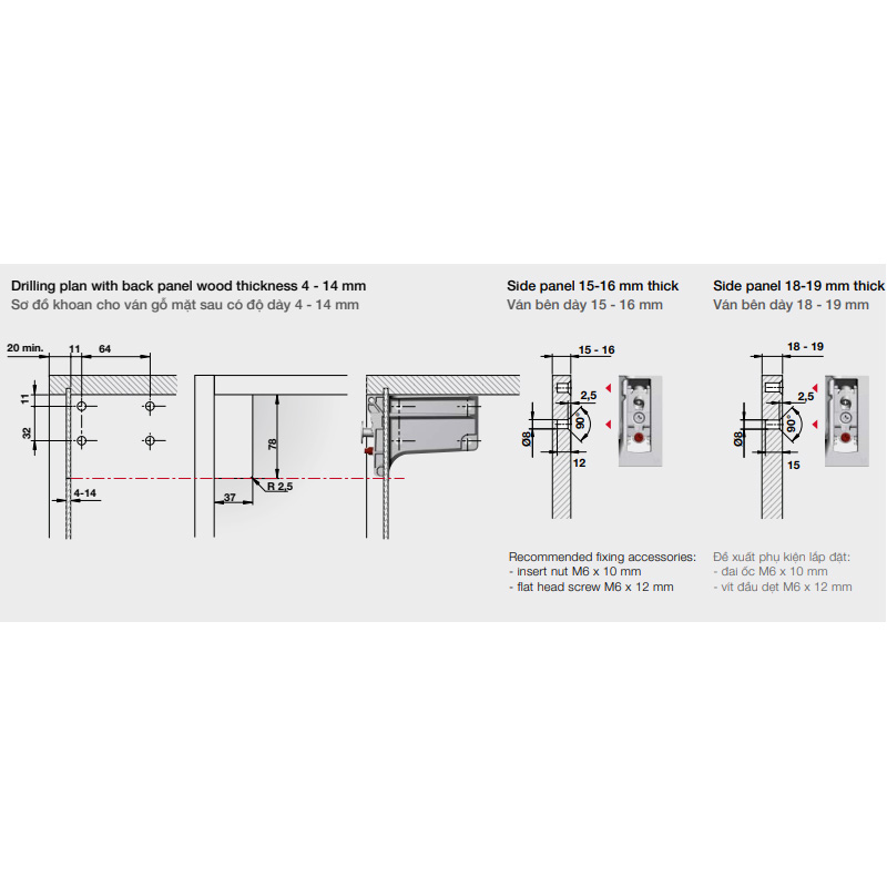bas treo tủ âm tường chịu tải trọng phân bố đều theo quy định DIN