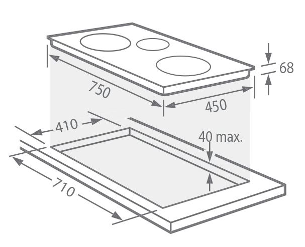 Đây là mặt kính chuyên dụng dành cho bếp điện từ, là một loại kính có chất lượng cao, rất cứng, bền và có nhiều đặc điểm nổi trội như: khả năng chịu nhiệt, khả năng chống trầy xước và chống va đập …. Mặt kính gồm các thấu kính hội tụ, truyền nhiệt từ bếp lên đáy nồi theo phương thẳng đứng, không thất thoát nhiệt ra môi trường. Mặt kính màu xám liền nguyên khối, an toàn, thẩm mỹ và tiện trong việc vệ sinh, lau chùi.