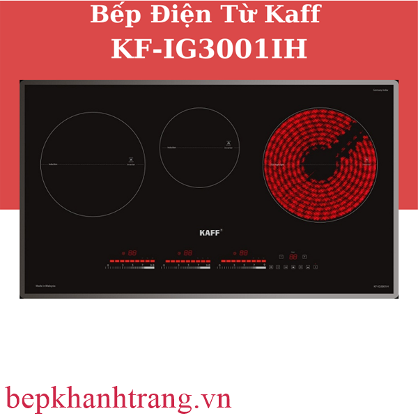 - Kết hợp 02 từ + 01 điện: Bếp điện từ KAFF KF-IG3001IH được thiết kế với 2 bếp từ và 1 bếp điện, mang lại sự linh hoạt và đa dạng trong việc nấu nướng. Bạn có thể sử dụng cả bếp từ và bếp điện tùy theo nhu cầu và loại nồi sử dụng.