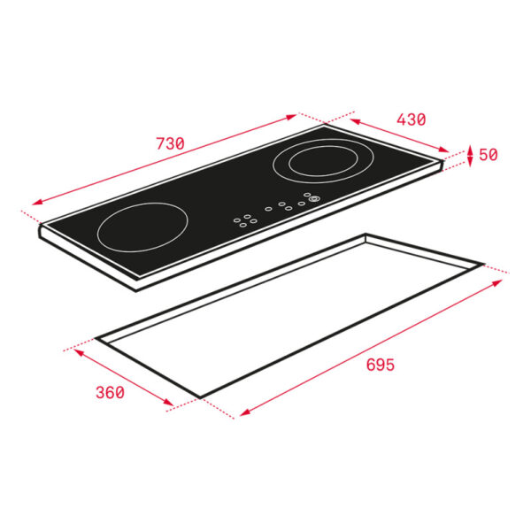 Kích thước mặt lắp âm: R695 x S360 mm.