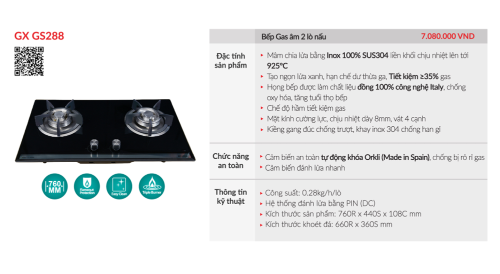 THÔNG SỐ KỸ THUẬT Bếp gas âm GrandX GX GS288