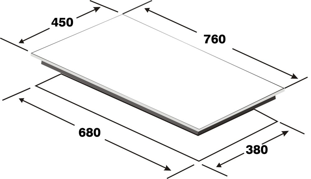 Kích thước mặt kính (mm) : 750 x 450 Kích thước cắt đá (mm) : 680 x 380 |