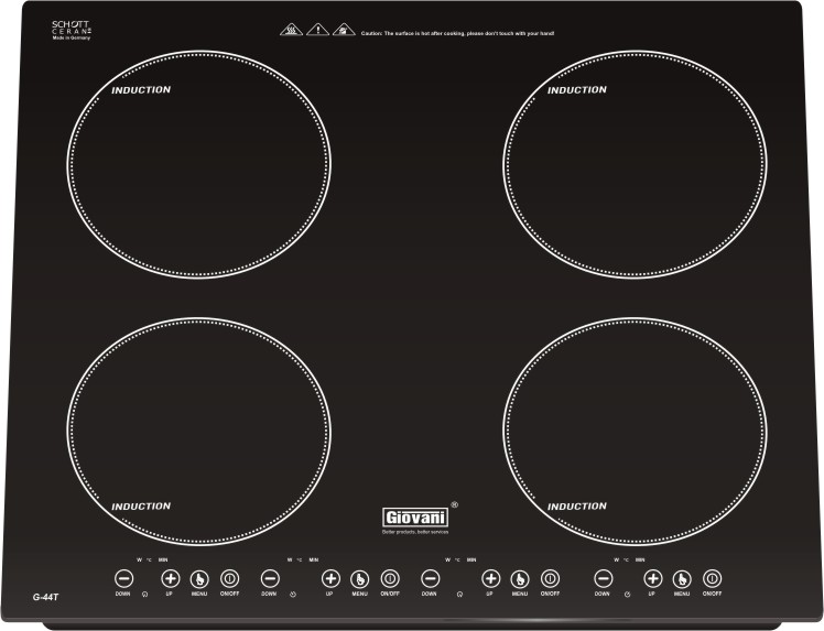 Bếp từ 4 vùng nấu Giovani G-44T sử dụng mặt kính Schott Ceran sản xuất tại Đức có độ bền, độ chịu lực, chịu nhiệt, chịu sốc nhiệt, tản nhiệt nhanh nhất trong tất cả các dòng kính chuyên dụng. Kính cũng không hề chứa khoáng chất độc hại, không sản sinh khí độc ra ngoài môi trường giúp đảm bảo an toàn cho sức khỏe của người dùng và môi trường xung quanh.