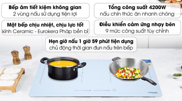 - Hẹn giờ độc lập cho từng vùng nấu đến 1 giờ 59 phút