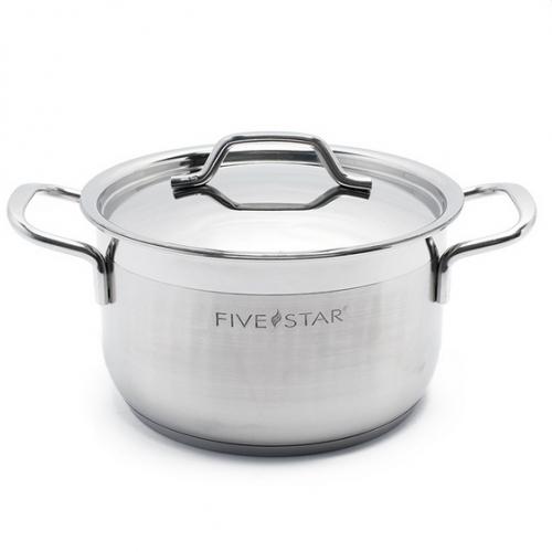 Luôn đáp ứng tiêu chí về chất lượng lẫn tính thẩm mỹ, bộ nồi Five Star FS08CV được pha trộn giữa nét cổ điển và phong cách Châu Âu. Thân nồi nguyên khối chắc chắn, quai cầm có thể chịu lực lên đến 25kg nên bạn hoàn toàn yên tâm khi nâng hoặc di chuyển. Nắp inox có lỗ nhỏ giúp chống tràn, chất liệu bền bỉ nên bạn cũng không phải lo lắng nếu lỡ rơi rớt nắp đậy.