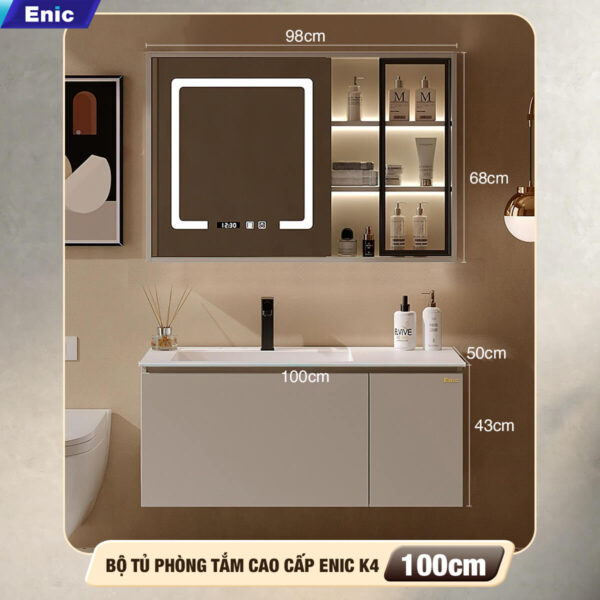 Bộ tủ phòng tắm cao cấp Enic K4 – 100cm Gương Thông Minh