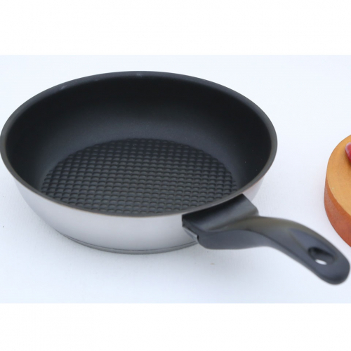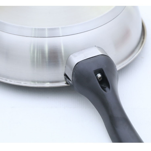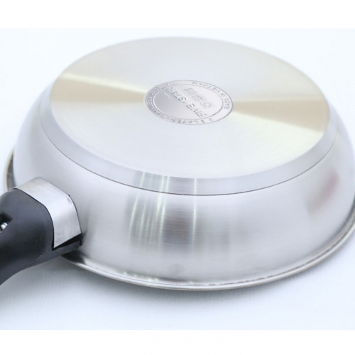 Đáy chảo thiết kế 3 lớp. Lớp inox 430 ngoài cùng có đặc tính nhiễm từ, lớp nhôm ở giữa giúp thu nhiệt nhanh và dẫn nhiệt tỏa đều, lớp trong cùng là inox 430 phủ chống dính ít bị oxi hóa, ít phản ứng với thức ăn, đảm bảo an toàn.
