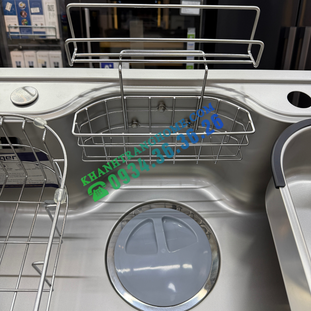- Giỏ đựng đồ thông minh – tối ưu không gian: Giỏ inox 304 cao cấp có thiết kế vừa vặn, giúp tận dụng tối đa diện tích chậu để sắp xếp phụ kiện như xà phòng, miếng rửa bát, thớt gỗ… một cách gọn gàng, ngăn nắp.