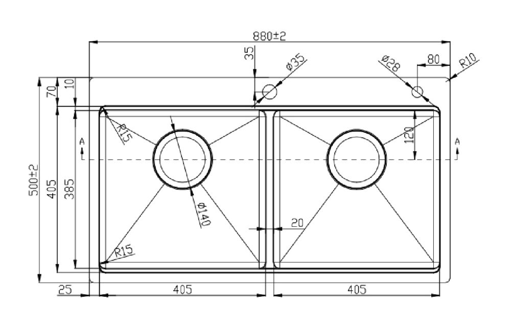 - Kích thước hố (mm): R405 x S385 & R405 x S385