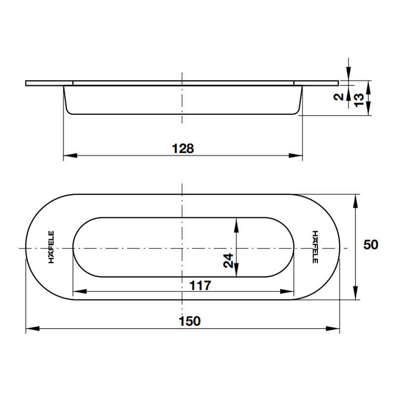 DIY Tay nắm âm 150x50mm – Màu đồng bóng PVD Hafele 489.72.143