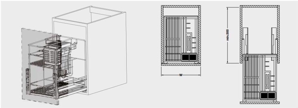 - Chiều sâu lọt lòng tủ tối thiểu: 500mm