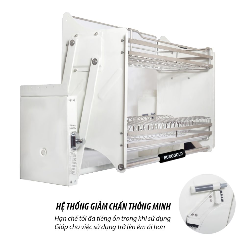 Bạn sẽ không còn lo lắng bát đĩa bị va chạm mỗi khi nâng lên hay hạ xuống. Cơ cấu giảm chấn luôn hoạt động một cách hiệu quả giúp bát đĩa luôn ổn định khi nâng hạ, sắp xếp.