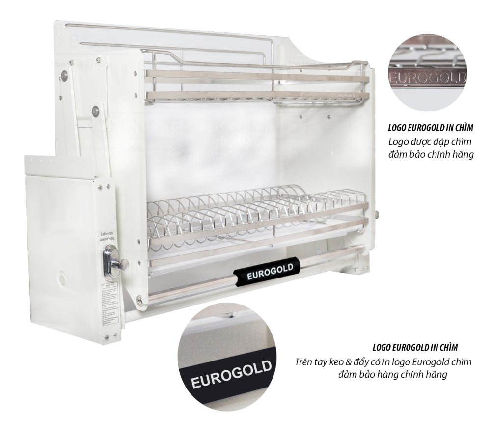 Giá bát đĩa nâng hạ Eurogold EVI190 sẽ mang lại cho bạn những trải nghiệm tuyệt vời nhất trong chính căn bếp nhà mình bởi tính năng tiện dụng, thiết kế chắc chắn nhưng cũng không kém phần đẹp mắt; kèm theo đó còn có những chính sách khuyến mại và bảo hành hấp dẫn.