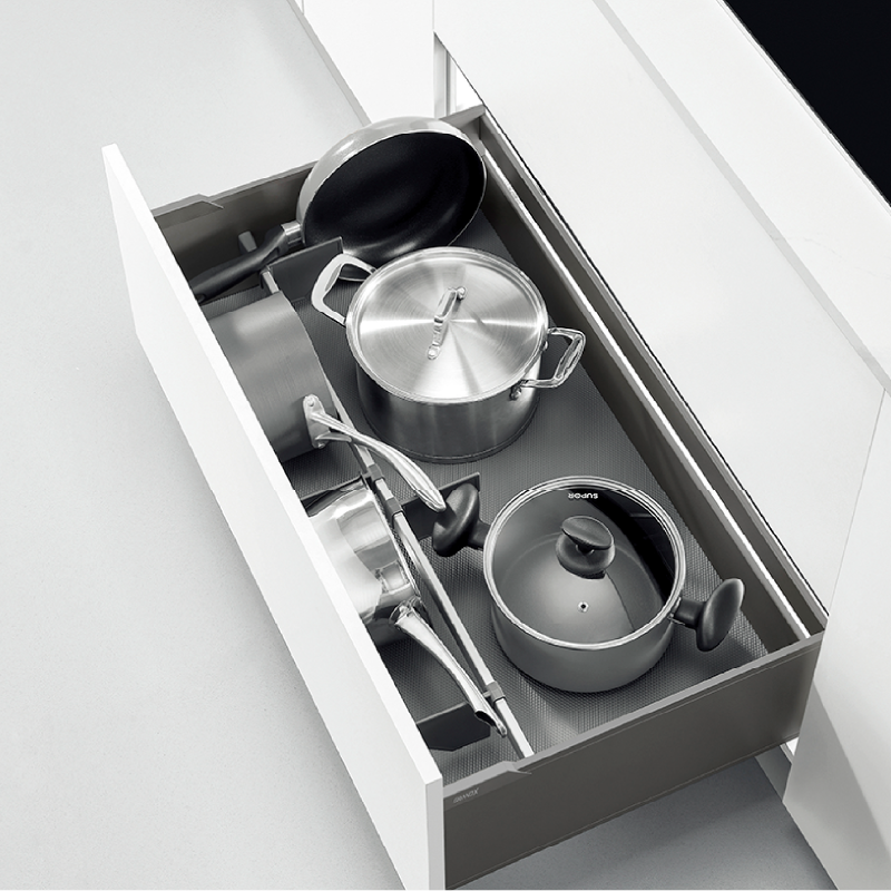 - Tối ưu hóa không gian lưu trữ: Thiết kế hộp kéo thông minh bên trong ngăn kéo giúp mở rộng khả năng lưu trữ, dễ dàng sắp xếp và lấy các vật dụng, tận dụng tối đa diện tích tủ bếp.