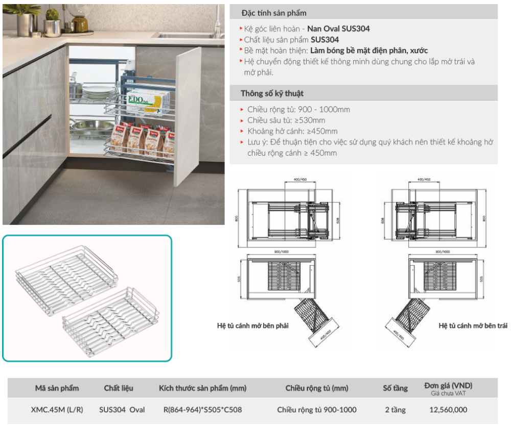 THÔNG SỐ KỸ THUẬT Kệ góc liên hoàn GrandX XMC.45M (L/R)
