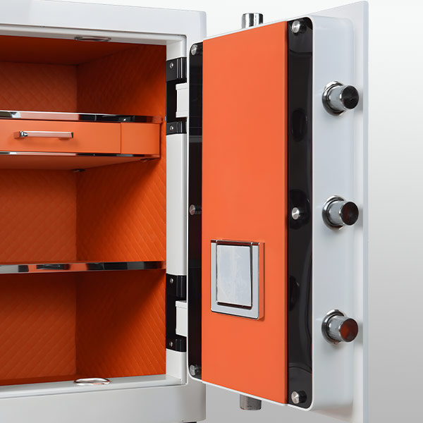 Bên trong két được bọc da thủ công cao cấp, mang đến cảm giác sang trọng và khác biệt so với các dòng két thông thường. Các ngăn chứa được bố trí khoa học, giúp sắp xếp tiền bạc, giấy tờ, trang sức và tài sản giá trị một cách gọn gàng, an toàn. Từng đường may và chi tiết hoàn thiện đều được chăm chút kỹ lưỡng, tạo nên không gian lưu trữ đẳng cấp.