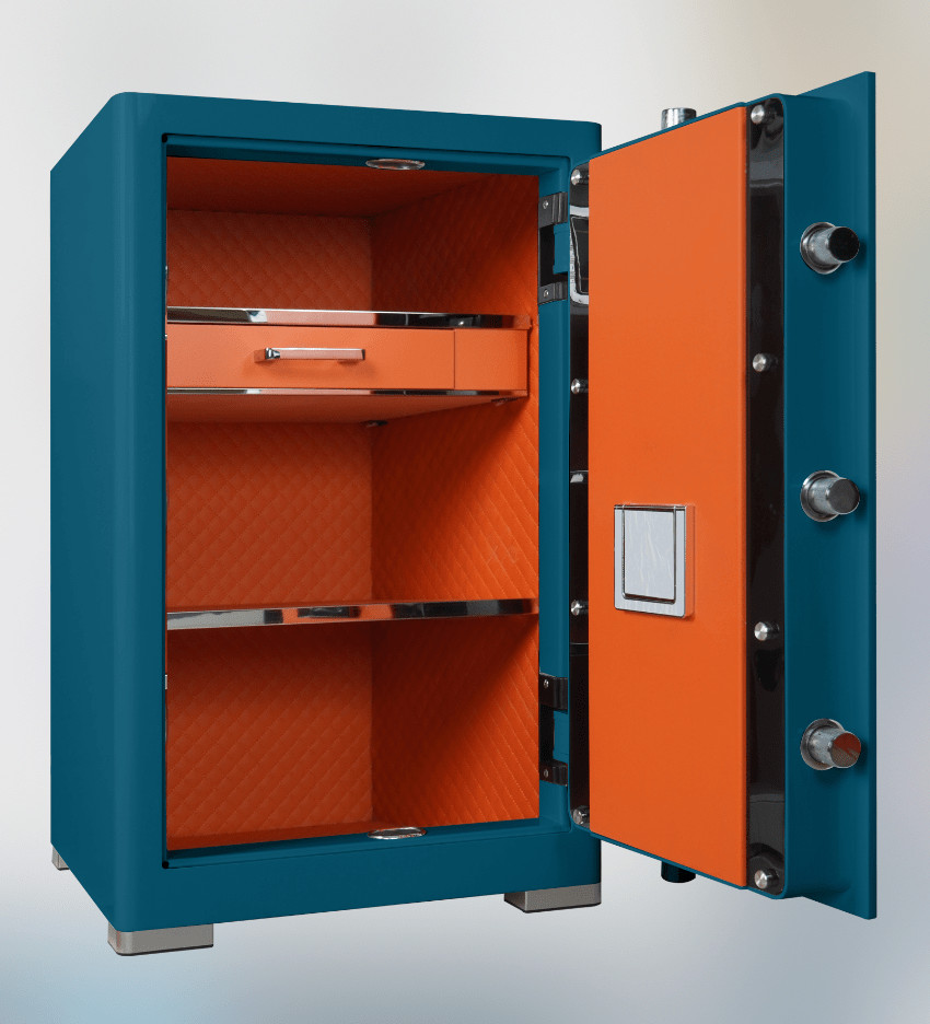 Két sắt Liberty LB79PRO Special Edition nổi bật với gam màu xanh cổ vịt độc đáo, mang phong cách sang trọng và hiện đại, phù hợp với nhiều không gian nội thất cao cấp. Bên trong két được bọc da thủ công tinh tế, tạo cảm giác đẳng cấp và chỉn chu trong từng chi tiết. Không chỉ là thiết bị bảo vệ tài sản, chiếc két còn giống như một món nội thất cao cấp thể hiện gu thẩm mỹ của gia chủ. - Bảo mật đa lớp với vân tay, mã số và chìa khóa chống sao chép