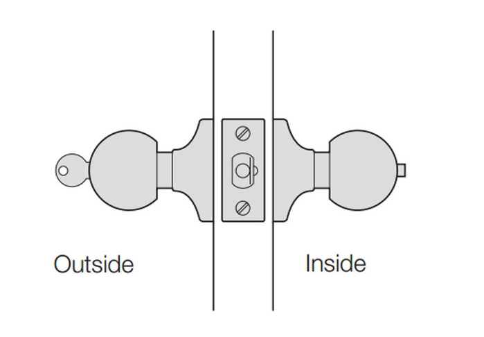 Outside: Cửa có thể Được mở khóa bằng cách sử dụng chìa khóa từ bên ngoài.