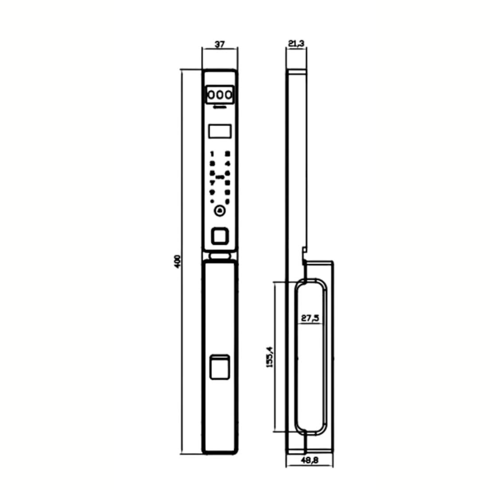 - Kích thước khóa: 400 × 37 × 21.3 mm