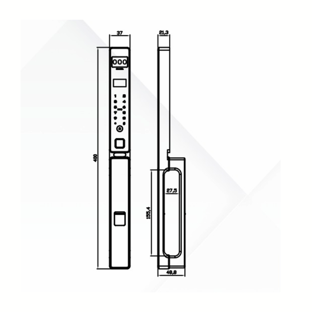 • Kích thước mặt ngoài: 37mm x 400mm x 21.3mm