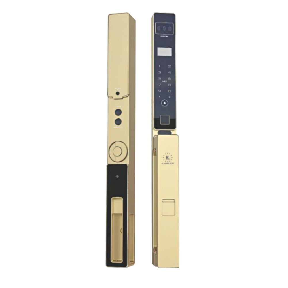 Khóa vân tay cửa nhôm Kassler KL-599 CNC-02 CHAMPAGNE GOLD APP, Face ID tiêu chuẩn Đức