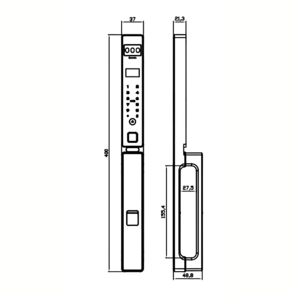 • Kích thước thân khóa ngoài: R 37 x C 400 x D 21.3 mm