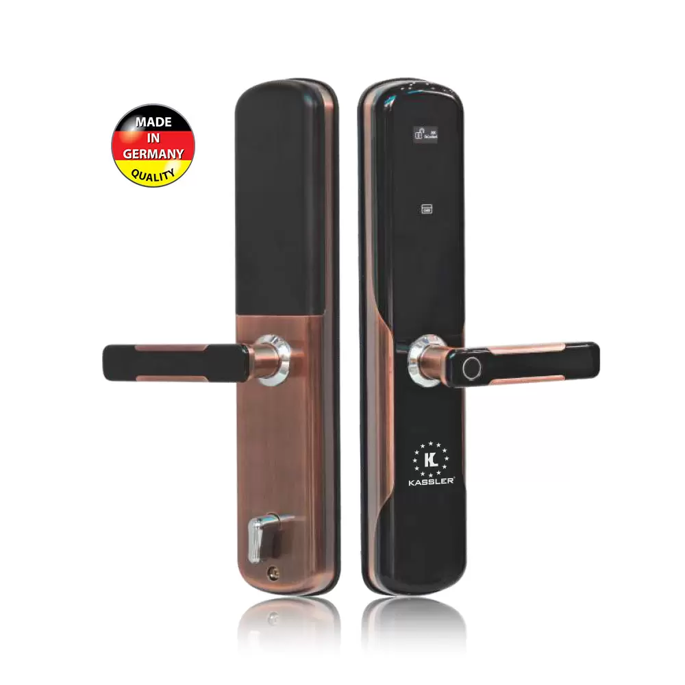 - Kassler KL-700 APP là mẫu khóa điện tử cao cấp sở hữu thiết kế hiện đại, sang trọng cùng khả năng vận hành thông minh. Với thân khóa ngoài kích thước lớn và màu đen mạnh mẽ, sản phẩm mang đến cảm giác chắc chắn, phù hợp với nhiều không gian nội thất từ nhà ở đến văn phòng cao cấp.