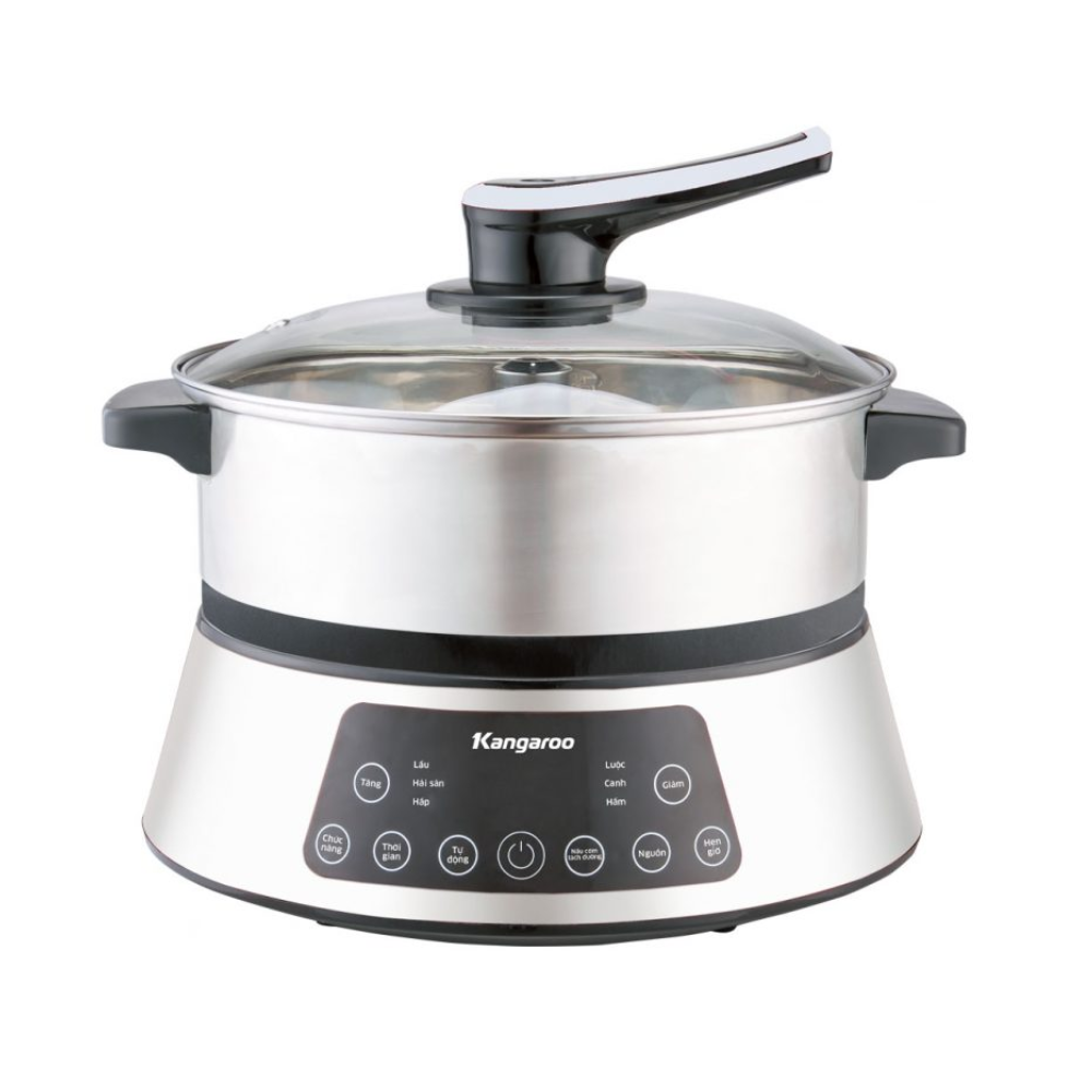 - Lẩu điện Kangaroo KGEH5D2 còn nổi bật với chức năng nâng/hạ khay thực phẩm tự động, giúp bạn dễ dàng điều chỉnh thực phẩm mà không cần phải mở nắp. Điều khiển cảm ứng điện tử và chức năng hẹn giờ mang lại sự tiện lợi tối đa, giúp người dùng dễ dàng thao tác và nấu ăn chính xác mà không phải lo lắng về việc canh thời gian.