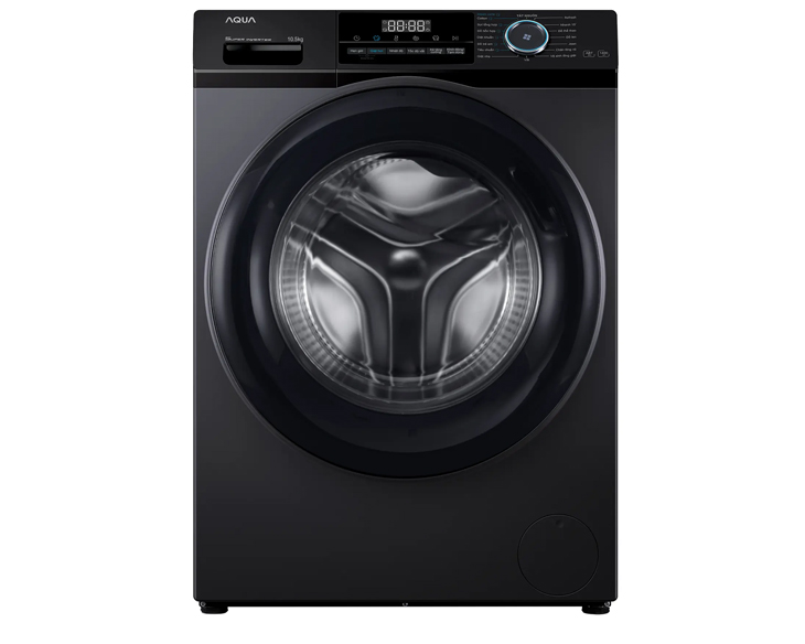 - Máy giặt Aqua Inverter 9.5 kg AQD-A952J (BK) gây ấn tượng với thiết kế cửa trước hiện đại, gam màu đen sang trọng, dễ dàng hòa hợp nhiều không gian nội thất. Kiểu dáng thân máy gọn gàng, tối ưu diện tích lắp đặt cho căn hộ và nhà phố. Bảng điều khiển tiếng Việt kết hợp núm xoay trực quan, thuận tiện cho người dùng ở mọi độ tuổi.
