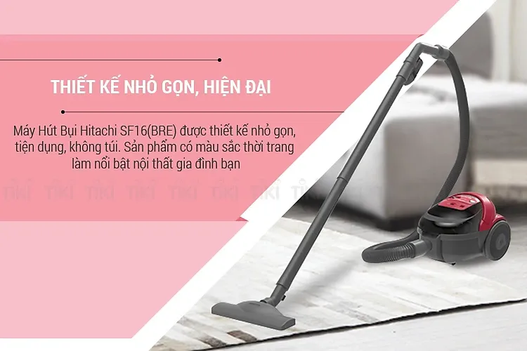 - Máy hút bụi Hitachi CV-SF16(BRE) sở hữu thiết kế nhỏ gọn, hiện đại với gam màu thời trang, phù hợp nhiều không gian nội thất gia đình. Kiểu dáng không túi giúp máy trông gọn gàng, dễ sử dụng, đồng thời trọng lượng nhẹ kết hợp dây điện dài 5 m cho phép di chuyển linh hoạt khi vệ sinh khắp căn nhà.