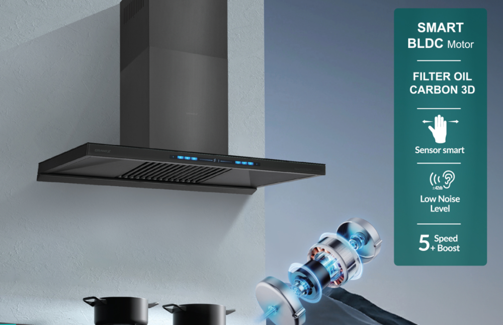 - Máy hoạt động hiệu quả với công suất hút ±980m³/h, dễ dàng loại bỏ mùi thức ăn, dầu mỡ và khói bếp. Động cơ Inverter BLDC giúp tiết kiệm điện năng, giảm độ ồn đáng kể, mang lại sự thoải mái khi nấu nướng. Bên cạnh đó, điều khiển cảm ứng thông minh cùng chế độ hẹn giờ giúp người dùng thao tác đơn giản và thuận tiện hơn.