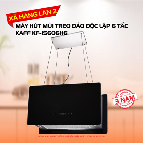 Máy hút mùi bếp 6 tấc treo đảo độc lập KAFF KF-IS606HG được phân phối chính hãng tại Siêu Thị Bếp Khánh Trang, giao hàng và lắp đặt miễn phí TP.HCM, bảo hành chính hãng, bảo trì nhanh tận nhà trong 2 giờ.