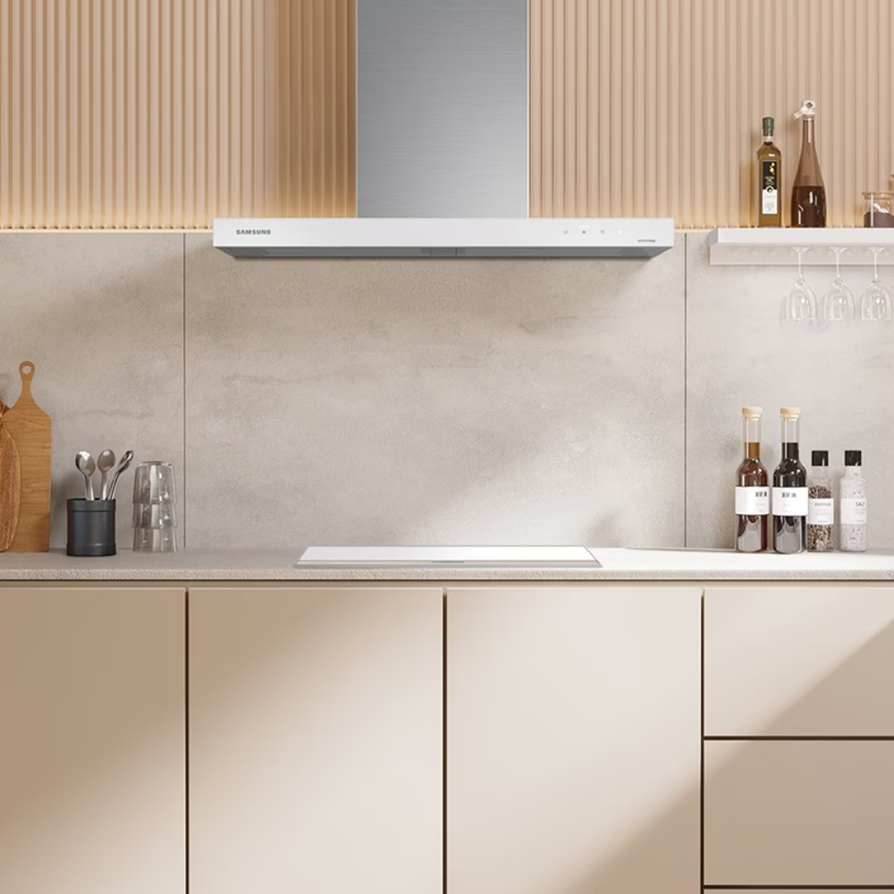 - Máy hút mùi Bespoke Samsung NK36CB665WWHSV là lựa chọn lý tưởng cho những căn bếp hiện đại, nơi yêu cầu cao về cả hiệu suất lẫn thiết kế. Với kiểu dáng gắn tường thanh lịch và gam màu trắng tối giản, sản phẩm không chỉ đóng vai trò như một thiết bị gia dụng, mà còn là điểm nhấn thẩm mỹ cho không gian bếp.