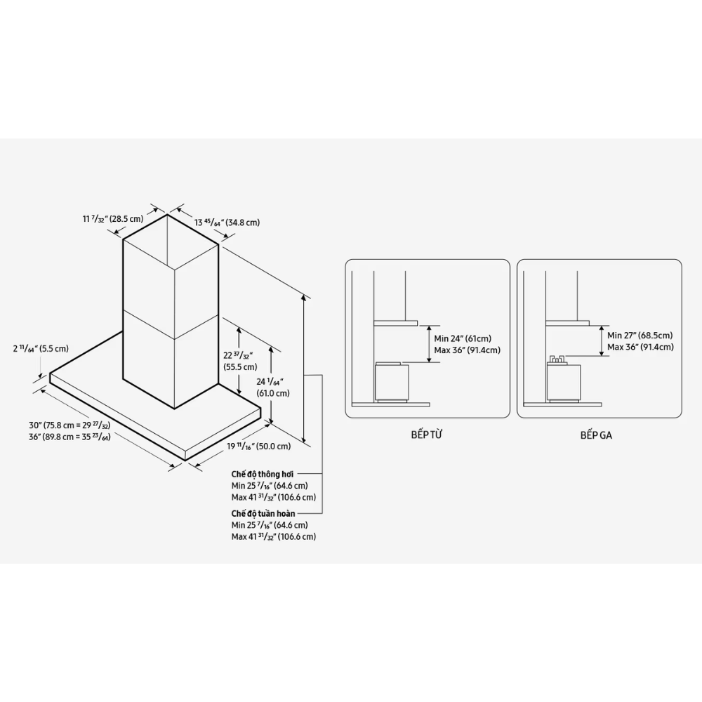 THÔNG SỐ KỸ THUẬT Máy hút mùi Bespoke Samsung NK36CB665WWHSV