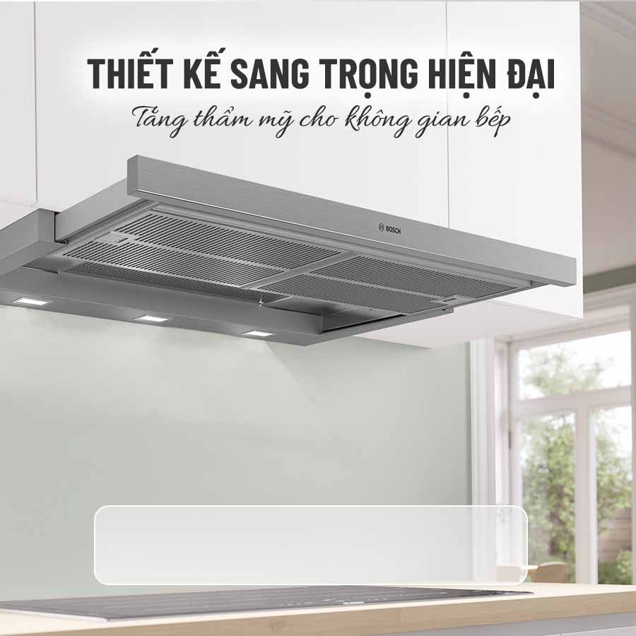 - Máy hút mùi Bosch DFS097A51B là sản phẩm hội tụ đầy đủ các yếu tố cần thiết cho một thiết bị hút mùi hiện đại: thiết kế tinh tế, hiệu suất mạnh mẽ và vận hành êm ái. Với kiểu dáng âm tủ thanh trượt, sản phẩm không chỉ giúp tiết kiệm diện tích mà còn mang lại vẻ đẹp sang trọng, hài hòa cho không gian bếp. Đây là lựa chọn lý tưởng cho những ai yêu thích phong cách tối giản nhưng vẫn cần sự tiện nghi tối đa.