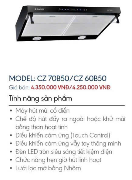 MÁY HÚT MÙI CANZY CZ 70B50