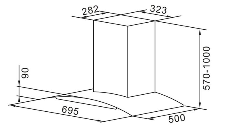 Máy hút mùi Chefs EH-R501E7DC được thiết kế với kiểu dáng của dòng máy hút mùi kính cong treo áp tường, kích thước ngang 70cm phù hợp cho mọi không gian nhà bếp hiện tại ở Việt Nam. Kiểu dáng kính cong không những giúp quá trình hút mùi hiệu quả hơn mà còn tăng vẻ đẹp thẩm mỹ cho gian bếp sở hữu chiếc máy này.