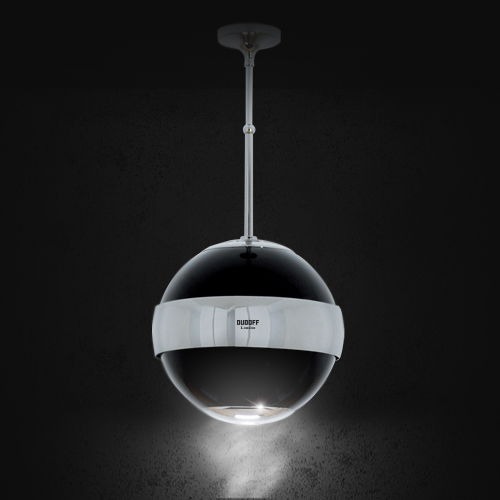 Máy hút mùi đảo kết hợp trang trí Earth B hình cầu tròn, kết hợp kính đen và mạ Chrome bóng.