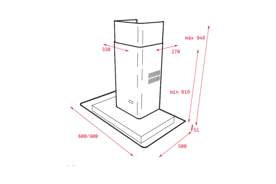 Kích thước lắp đặt máy hút khử mùi Teka DG 3 ISLA 980 40485140