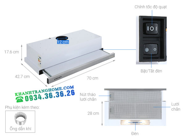 Máy hút mùi âm tủ Kocher K-6270 hút mùi mạnh mẽ, dễ sử dụng, tin tưởng chiếc máy này sẽ quét sạch hết mùi, khói cho gian bếp của nhà bạn luôn sạch thoáng, cho bạn thêm yêu công việc nấu nướng hơn.
