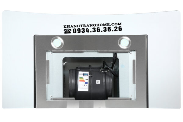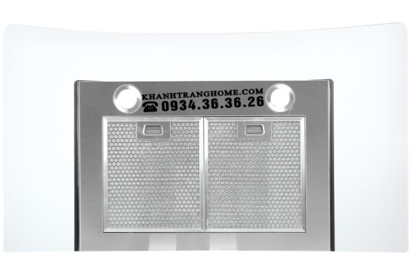 Máy hút mùi áp tường thiết kế mặt kính cong đẹp mắt, sang trọng với màu bạc có viền đen, tạo điểm nhấn cho không gian sử dụng