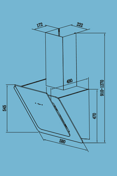 Công suất: 850m3/h, ống thoát Ø150 mm Đèn: 2 x1.5 LED và LED back lit trang trí