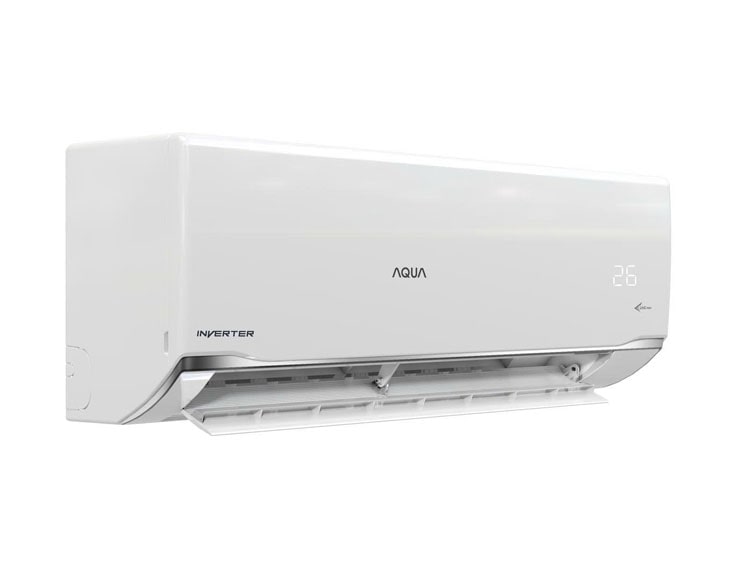 - Máy lạnh Aqua Inverter 2.5 HP AQA-RV24TA sở hữu thiết kế hiện đại với gam màu trắng trang nhã, đường nét vuông vức, phù hợp lắp đặt trong các không gian lớn như phòng khách, phòng họp hay khu vực sinh hoạt chung. Dàn lạnh được tích hợp màn hình LED hiển thị nhiệt độ rõ ràng, giúp người dùng dễ dàng theo dõi và điều chỉnh trong quá trình sử dụng.