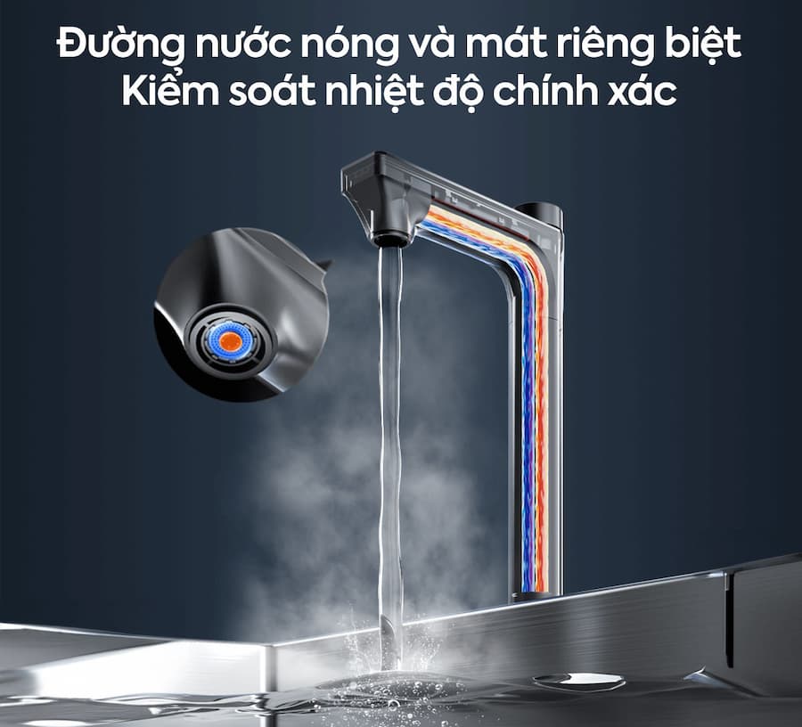 - Bên cạnh đó, thiết bị cũng tạo cảm giác yên tâm khi sử dụng lâu dài nhờ khả năng duy trì nguồn nước ổn định. Khi sử dụng cho các hoạt động như nấu ăn, pha đồ uống hay chuẩn bị thực phẩm, máy vẫn đảm bảo cung cấp nước đều và liên tục.