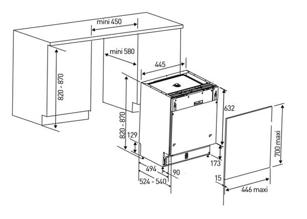 Chiều sâu với cửa mở ở 90 ° (mm) | 1155 mm |
