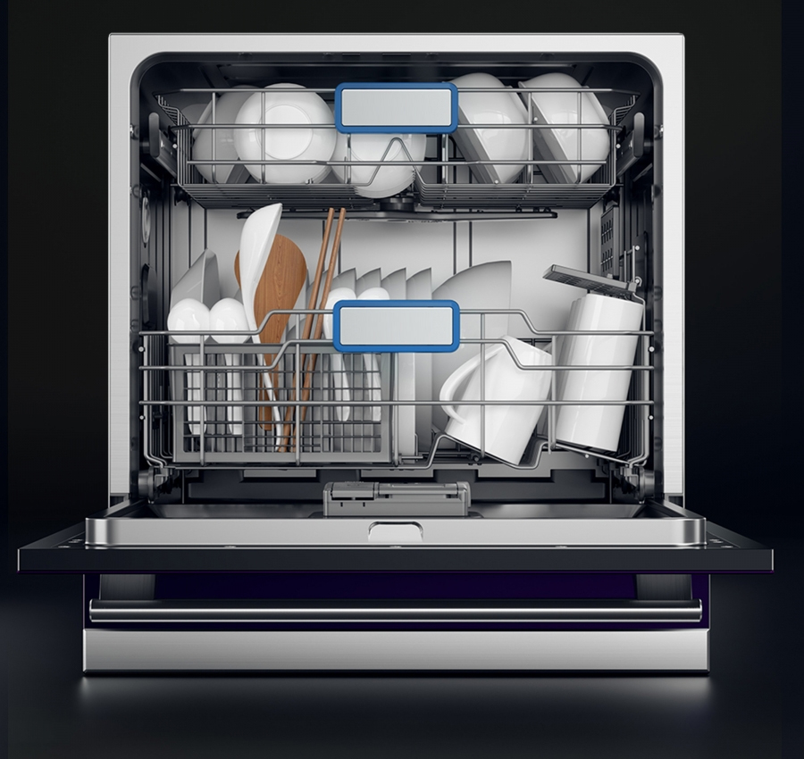- Máy có dung tích 8 bộ Châu Âu, đồng thời có thể chứa được 10 bộ bát với 2 tầng giá rửa bát, đảm bảo sức chứa linh hoạt và khả năng rửa chén nhiều hơn. Điều khiển bằng phím bấm điện tử với màn hình Led giúp người dùng dễ dàng điều chỉnh các chế độ rửa và tạo sự tiện lợi.