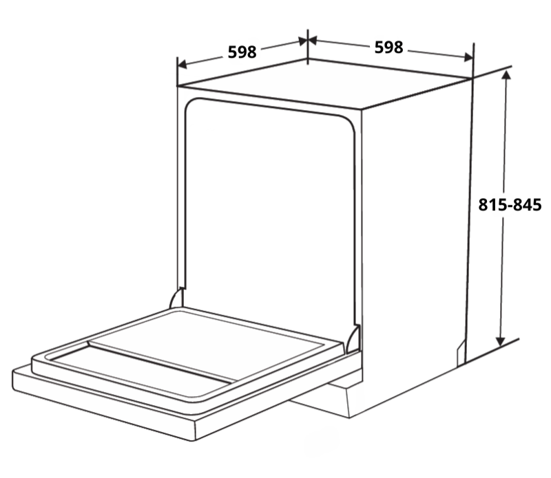 - Kích thước sản phẩm: 598R × 598S × 815–845C (mm)